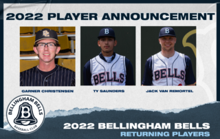 The Bells are excited to announce the return of three position players from the 2021 season. Catcher Garner Christensen, infielder Ty Saunders and infielder Jack Van Remortel will return to Bellingham this summer. Christensen joined the Bells on the back end of the 2021 season and took on a primary role as [...]