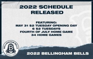 The Bellingham Bells are excited to announce the release of the West Coast League schedule. The Bells will begin play at Joe Martin Field on Tuesday, May 31st, beginning the season with a $2 Tuesday opening day and a three-game series versus one of the league’s newest teams, the Springfield Drifters. The [...]