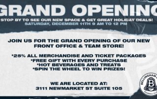 The Bellingham Bells are excited to announce a new team store & office location in Barkley Village. The team will host a grand opening event on Saturday, December 11 from 9 a.m. to 12 p.m. The event will feature complimentary beverages and treats, 25% off all merchandise and ticket packages, free gifts [...]