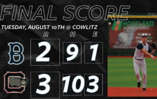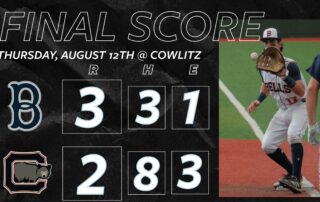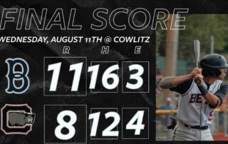 The Bellingham Bells were victorious in extra innings against the Cowlitz Black Bears on Wednesday Night, 11-8. Cowlitz took a 5-0 lead after the first two innings. Zack Simon (1.0 IP, 1 H, 3 R, 3 ER, 2 BB, 1 K) pitched the first inning. The game started on a walk, hit [...]