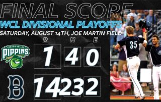 The Bellingham Bells defeated the Yakima Valley Pippins 14-1 in Game 1 of the WCL North Divisional Playoffs. Bellingham out-hit the Pippins 23-4, and scored in every inning but two. The 23 hits were a season-high for the Bells, and the 13-run playoff victory was the largest in franchise history. Yakima scored [...]