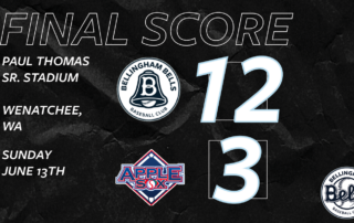 The Bellingham Bells defeated the Wenatchee Applesox by a final score of 12-3 in the series finale on Sunday. The game was called after six innings due to rain. Due to WCL rules, this game counts as an official win despite being shortened. Big Inning Early Bellingham jumped way ahead in the [...]