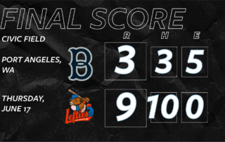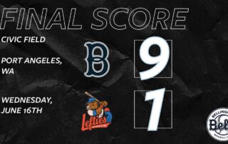 The Port Angeles Lefties bested the Bells in game three of the series, snapping Bellingham's three-game win streak. This was Bellingham's first series win of the season, and the loss tied the season series between the two at 3-3. Bellingham committed five errors in this game, their 10th game of the season [...]