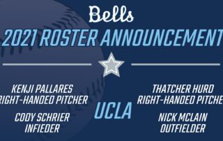 The Bells are excited to welcome four young ballplayers from UCLA to the 2021 roster: RHP Kenji Pallares, RHP Thatcher Hurd, shortstop Cody Schrier and outfielder Nick McLain. 6-foot-2, 200-pound Pallares will join the Bells in summer 2021 after being slated to make his Bells debut in the summer of 2020 (which [...]